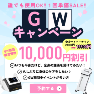 当サロンは短期間で高い効果が期待できると大注目の痩身マシン「ハイパーナイフ専門サロン」です。