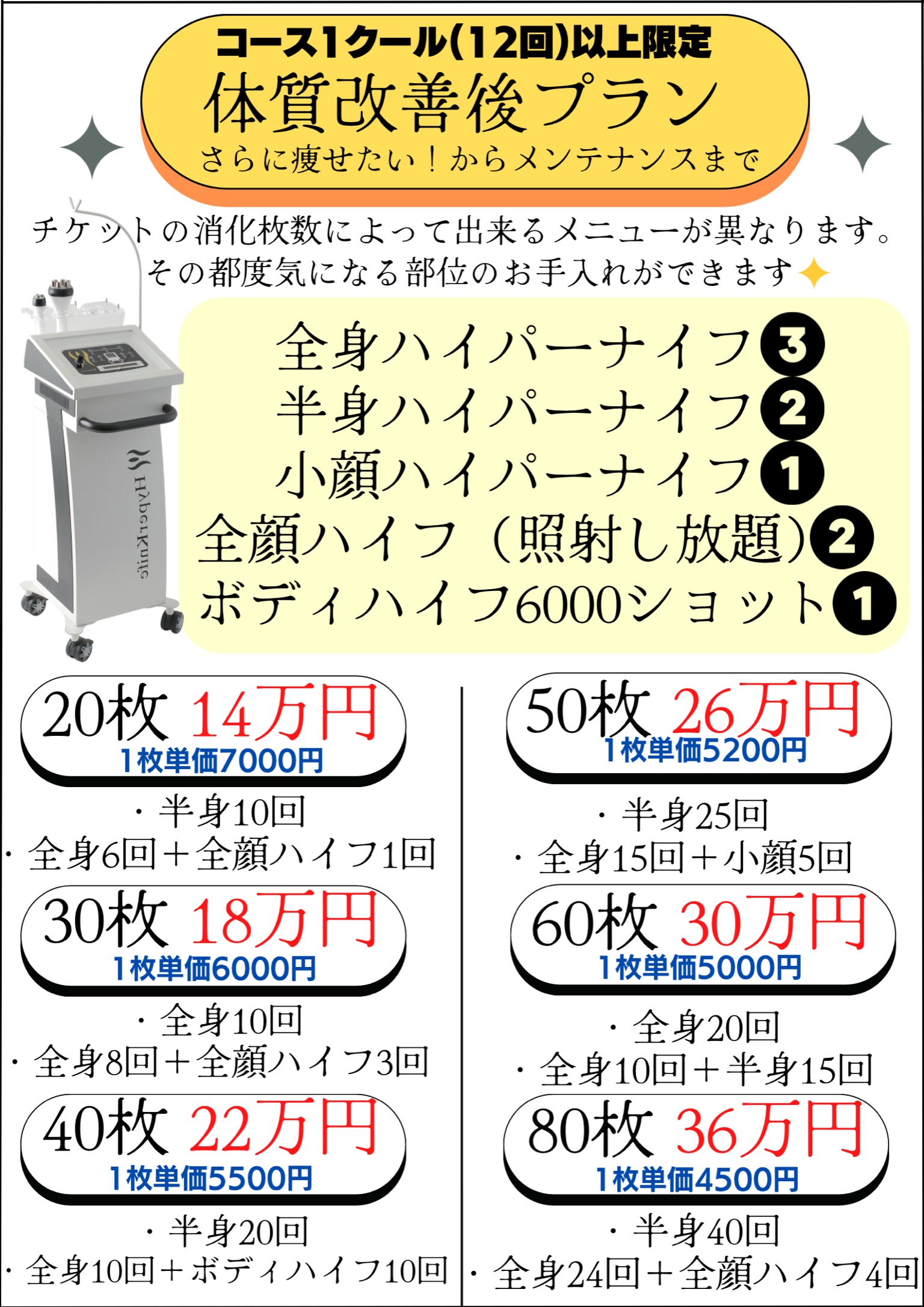 まとめて購入頂くと1枚あたり5000円以下になってくるので、体質改善が終わりメンテナンスや更にもうワンクールダイエットしたい方にリーズナブルに続けて頂きやすいキャンペーンです✨