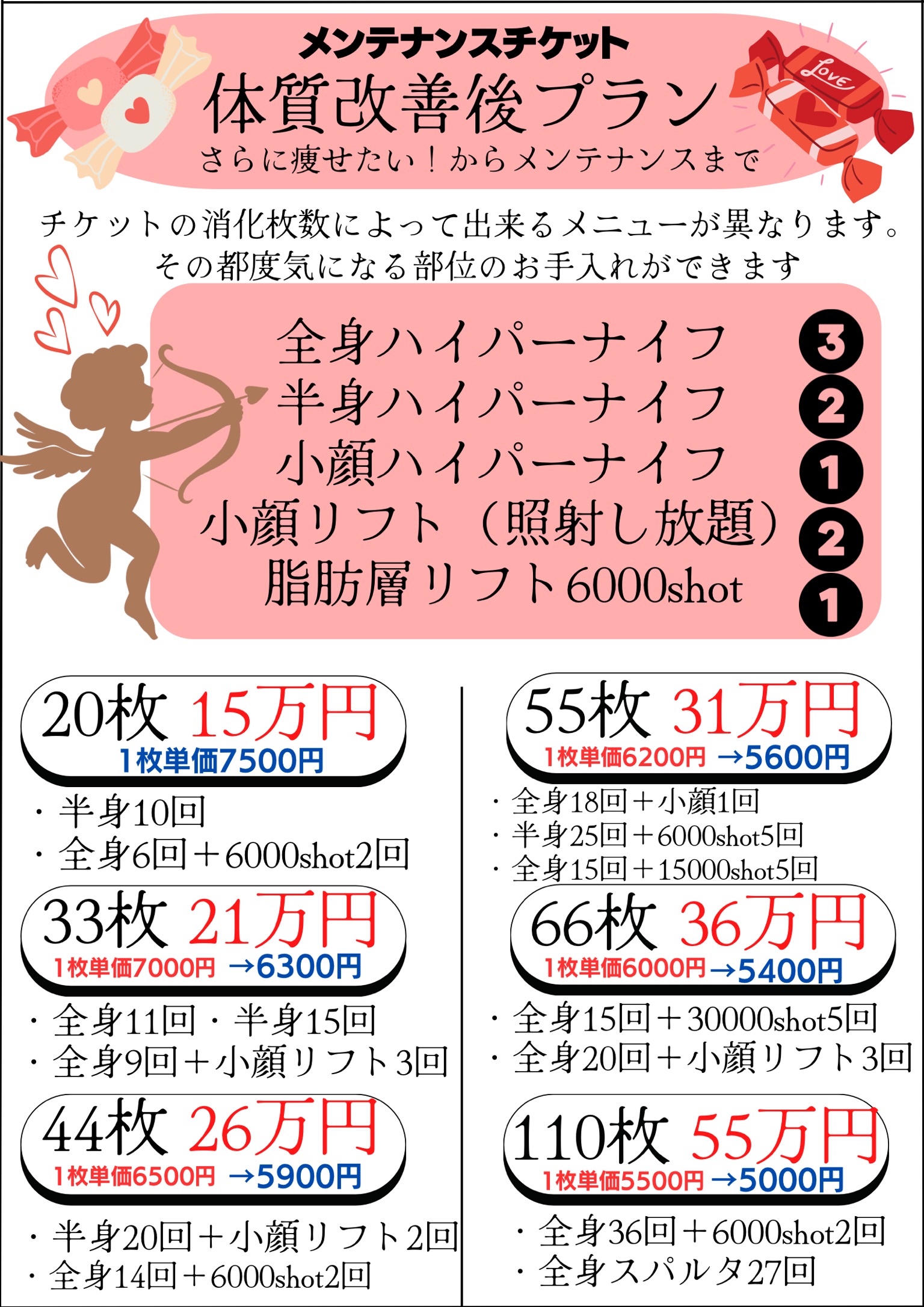 使用していただくチケットの枚数に応じて様々な施術をご利用頂くことが可能です☆
